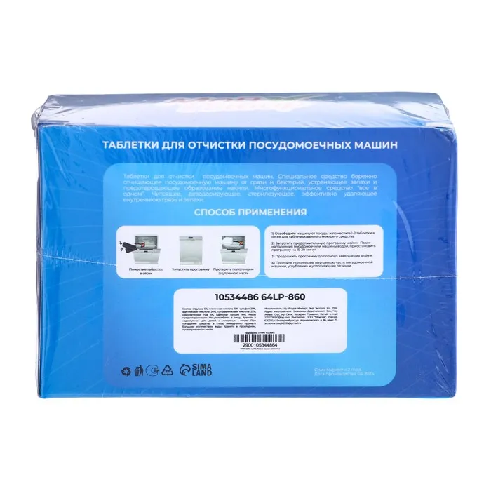 Противоплесневое и антизагрязнительное действие: Специализированная формула обеспечивает эффективное устранение плесени и загрязнений, предотвращая неприятные запахи и поддерживая гигиеничность посудомоечной машины.
