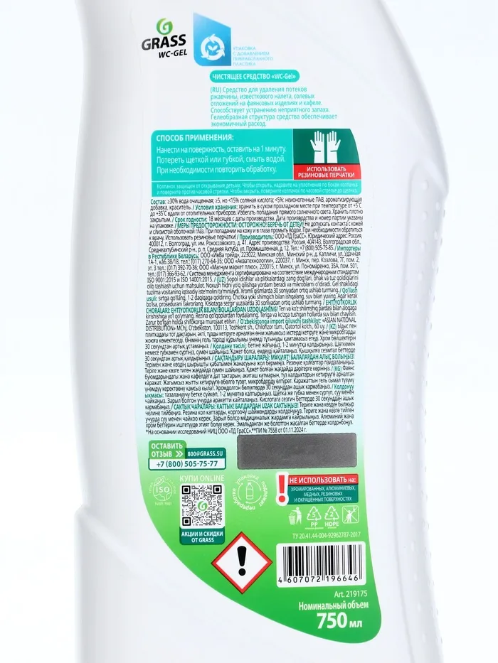 Средство для чистки сантехники WC-GEL, "Анти-ржавчина", 750 мл — Характеристики