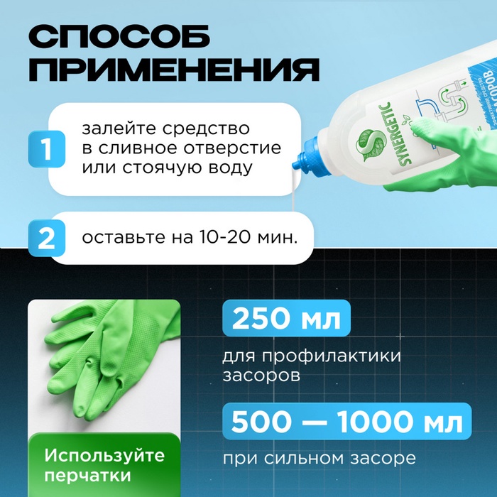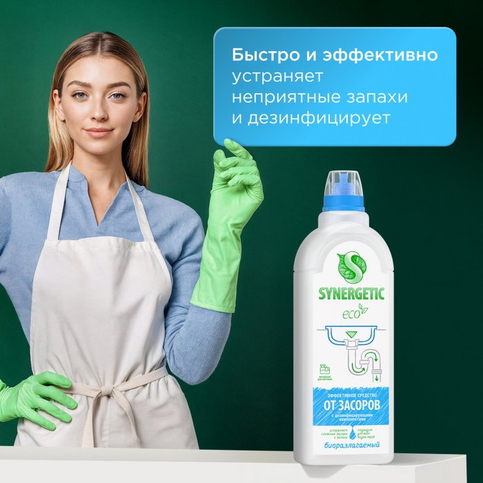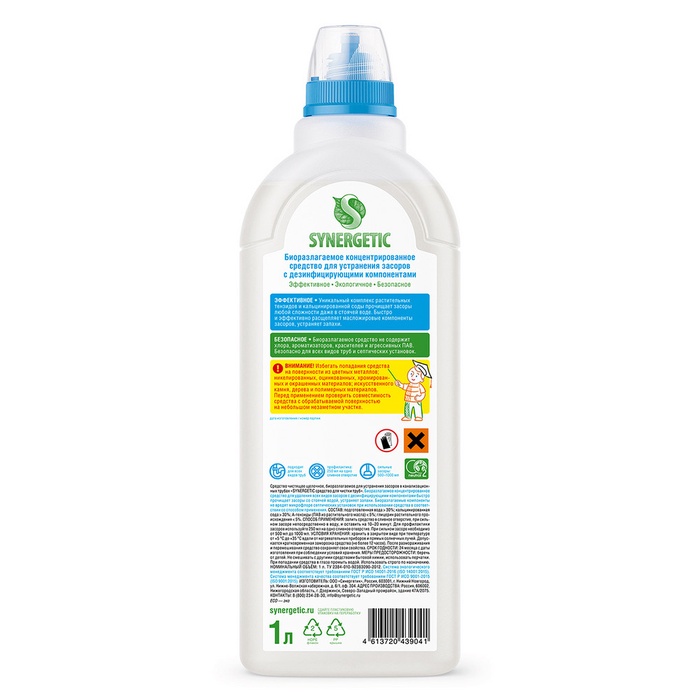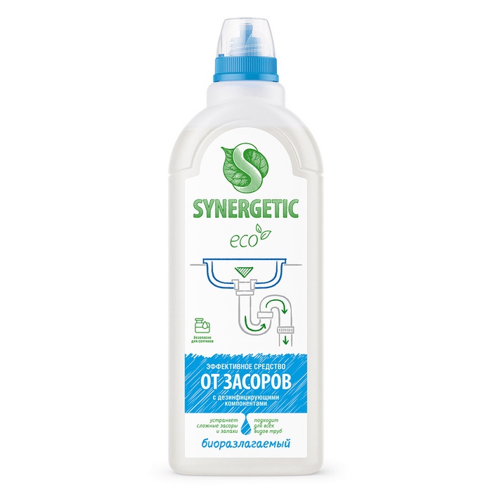Концентрированное средство для устранения засоров SYNERGETIC - высокоэффективное средство, подходящее для любых видов засоров и канализационных труб.