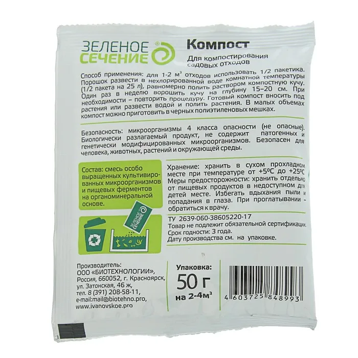 Средство для компостирования садовых отходов Компост Зеленое Сечение, 50 г — Характеристики