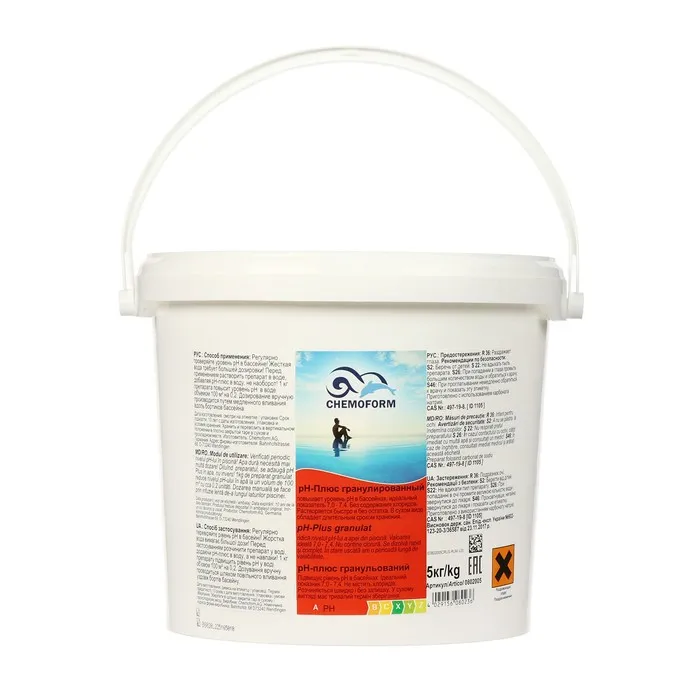 Препарат повышает уровень рН воды в бассейне. Изготовлен на основе биологических солей. Подходит для использования в частных и общественных бассейнах.