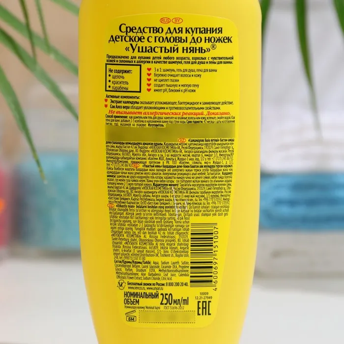 Средство 2 в 1 предназначено для детей любого возраста, в том числе новорожденных, используется в качестве шампуня и геля для тела. Бережно очищает волосы и кожу, гипоаллергенно, клинически проверено, не щиплет глазки; без мыла; без красителей; без парабенов.