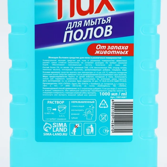 Средство для мытья полов «Против запаха домашних животных», 1000 мл, FLUX — Характеристики