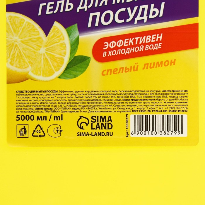 Средство для мытья посуды, 5 л, аромат лимона, FLUX — Характеристики