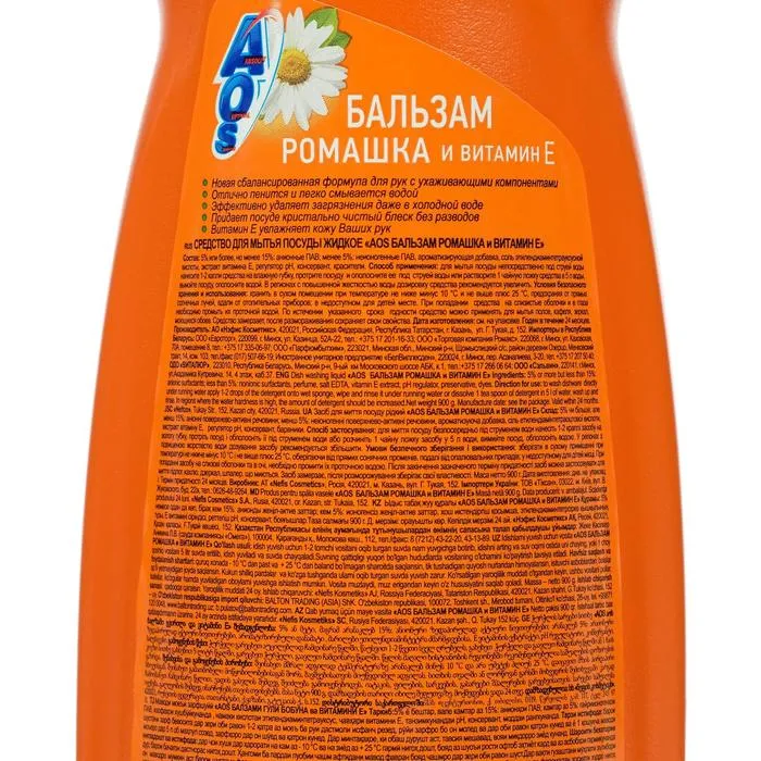 Средство для мытья посуды, AOS Бальзам ромашка и витамин Е 900 гр.
