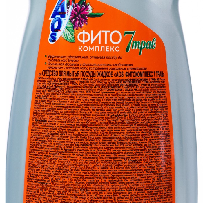 Средство для мытья посуды AOS Фитокомплекс 7 трав, 900 мл