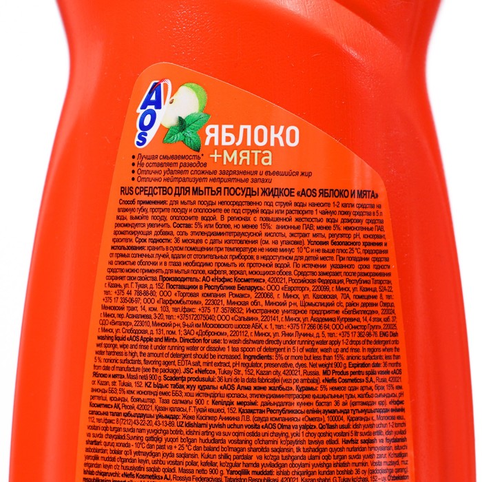 Средство для мытья посуды AOS Яблоко и мята, 900 мл — Характеристики