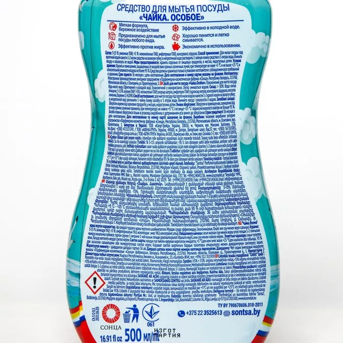 Способ применения: для мытья посуды под проточной водой нанести 1-2 капли средства на влажную губку; в непроточной воде растворить 1 чайную ложку средства в 5 литрах воды. Вымыть посуду и ополоснуть ее водой.