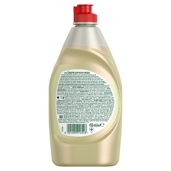 Средство для мытья посуды Fairy, гель, ромашка и витамин Е, 450 мл — Характеристики