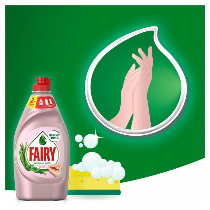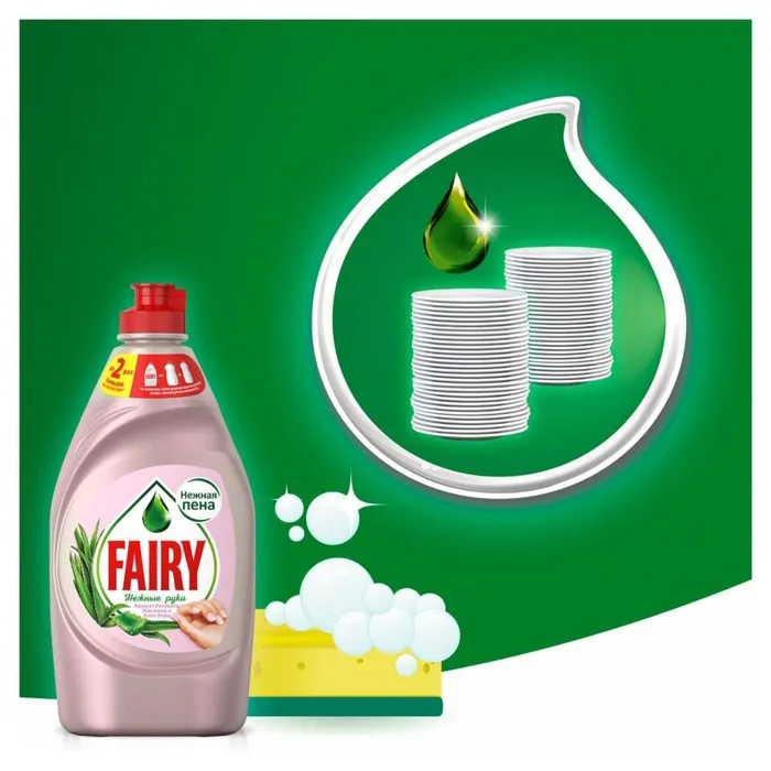 Средство для мытья посуды Fairy из линейки «Нежные руки» — ваш помощник в борьбе с жиром и сохранении нежности кожи. Гель для посуды с комбинированным ароматом розового жасмина и алоэ вера сделает повседневную задачу гораздо более приятной. Благодаря концентрированной формуле моющее средство от «Фейри» мгновенно расщепляет засохший жир и ухаживает за кожей рук.