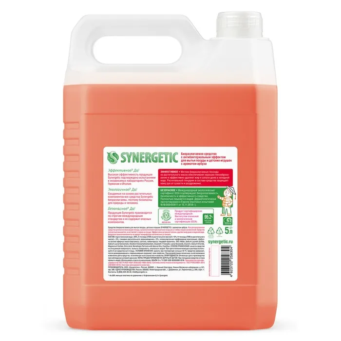 Биоразлагаемый концентрированный гель для посуды с антибактериальным эффектом SYNERGETIC - это экологичное, безопасное и эффективное средство для мытья всех видов посуды, в том числе детской, кухонного инвентаря и детских игрушек от любых видов загрязнений.