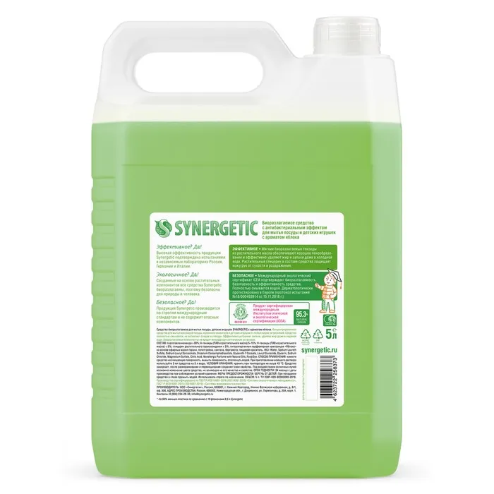 Биоразлагаемый концентрированный гель для посуды с антибактериальным эффектом SYNERGETIC - это экологичное, безопасное и эффективное средство для мытья всех видов посуды, в том числе детской, кухонного инвентаря и детских игрушек от любых видов загрязнений. Он не оставляет следов на посуде.