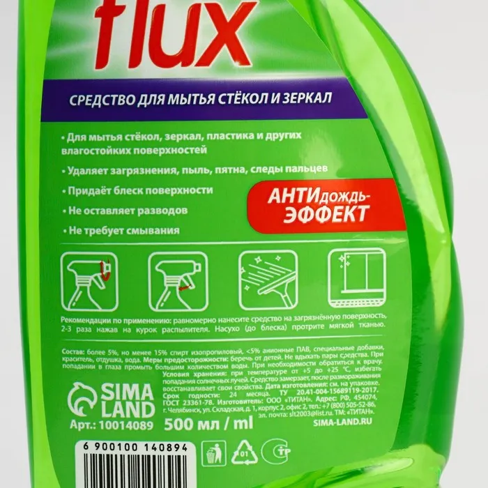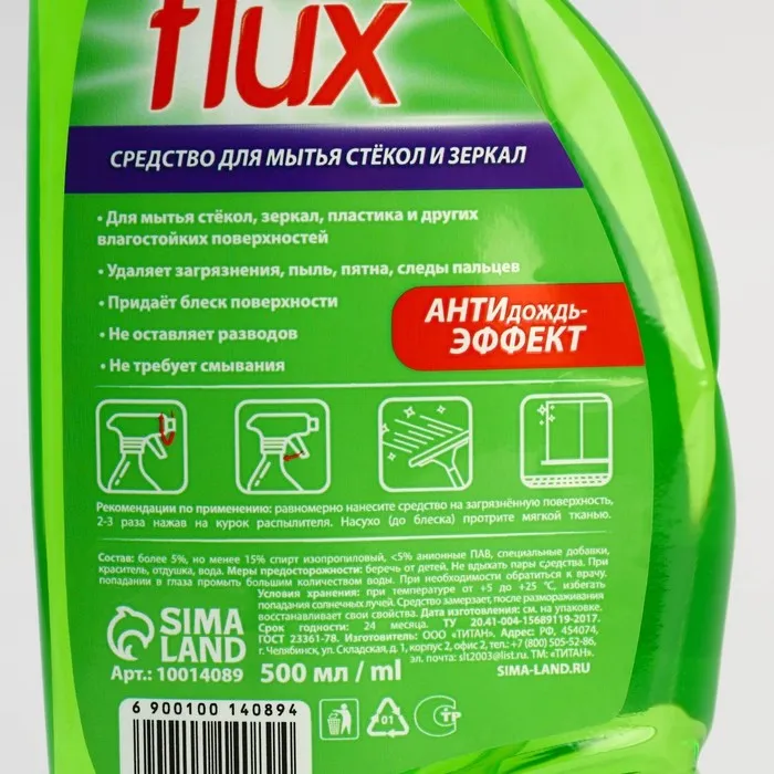 Средство для мытья стекол и зеркал, 500 мл, аромат яблока, FLUX — Характеристики