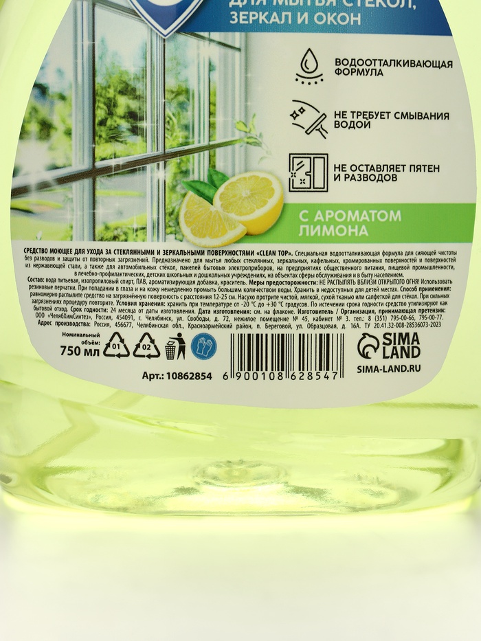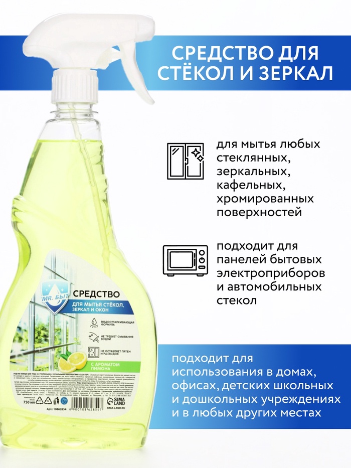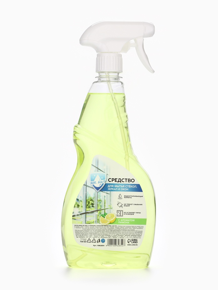 Средство для мытья стёкол, зеркал и окон, 750 мл, аромат лимон, Mr.Быт — Характеристики