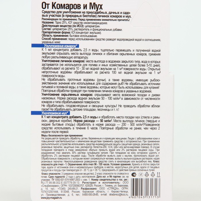 Меры предосторожности: избегать попадания в глаза, после применения вымыть руки с мылом.