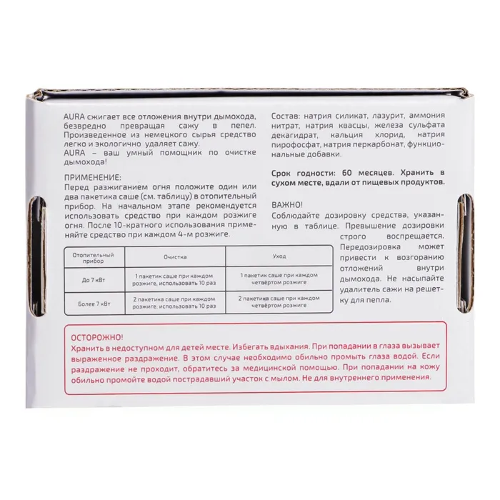 Очиститель дымохода Aura на 200 грамм – это эффективное средство для удаления накипи и сажи из дымоходов и труб. Созданный с использованием современных технологий, этот продукт обеспечивает глубокое и быстрое очищение, не оставляя за собой отложений. Благодаря его специальной формуле, очиститель Aura не только удаляет загрязнения, но и предотвращает их повторное появление, что значительно увеличивает срок службы вашей дымоходной системы. Применение этого средства простое и безопасно, что делает его идеальным выбором для домашнего использования.