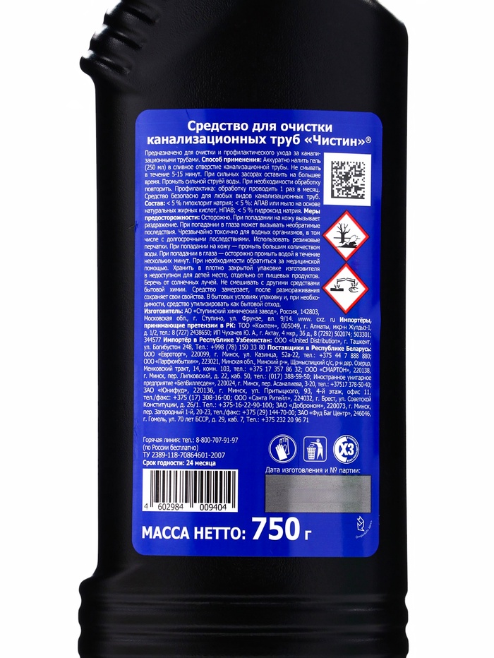 Способ применения: аккуратно нанести гель (250 мл) в сливное отверстие канализационной трубы. Не смывать в течение 5-15 мин. При сильных засорах оставить на большее время. Промыть сильной струей воды. При необходимости обработку повторить. В профилактических целях обработку проводить 1 раз в месяц.