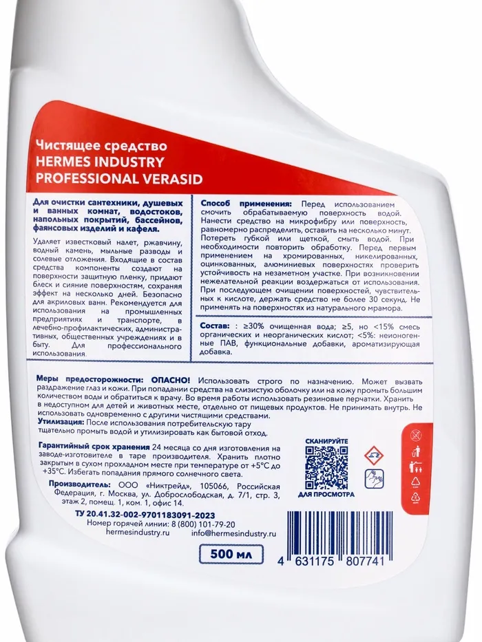 HERMES INDUSTRY — это гарантированная чистота и долгосрочный эффект, обеспечивающие вашему дому или рабочему месту безупречную гигиену. Отдавая предпочтение этому средству, вы делаете выбор в пользу качества, эффективности и безопасности. Пусть ваша ванная и санузел всегда остаются свежими, чистыми и здоровыми!
