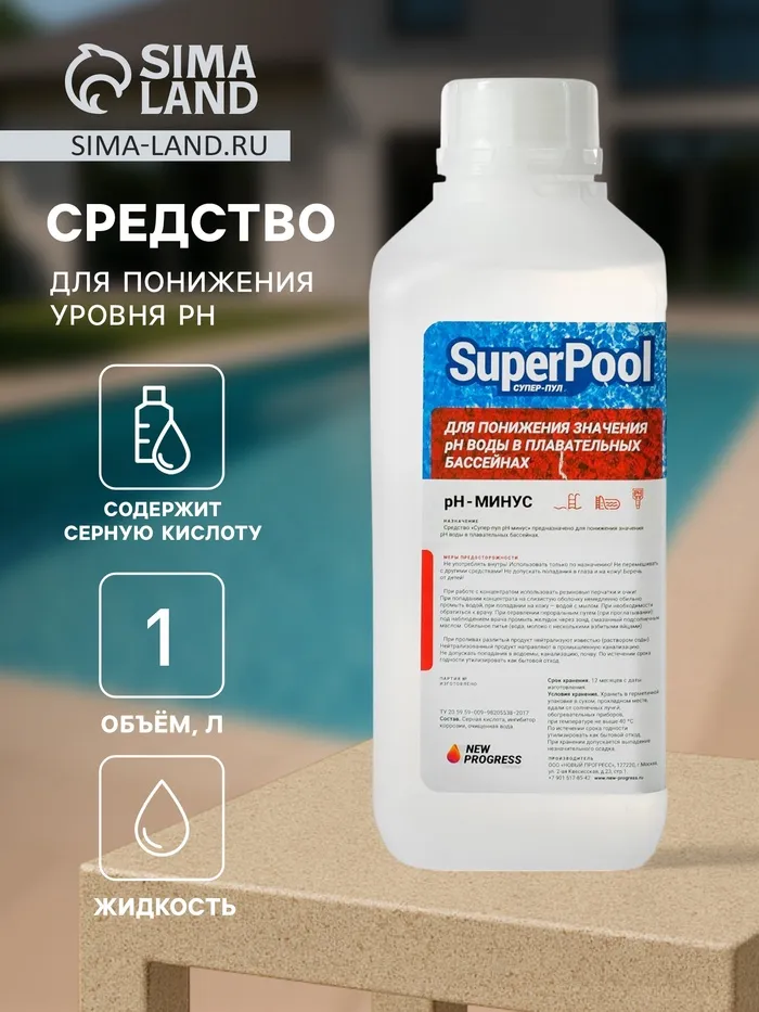 Средство «Супер-пул рН-минус» предназначено для понижения значения рН воды в плавательных бассейнах.