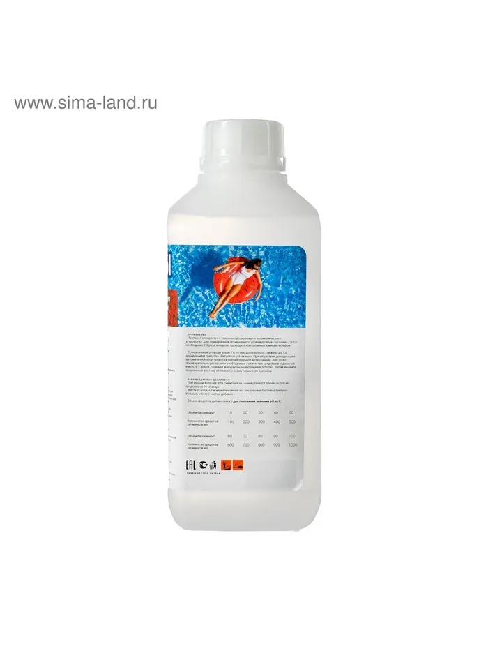 При ручной дозации: для снижения значения рН на 0,1 добавьте 100 мл средства на 10 м3 воды.