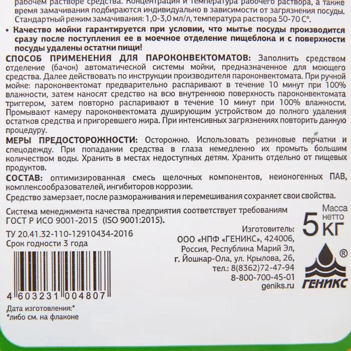 Средство предназначено для мойки в профессиональных машинах всех типов посуды, а также для очищения внутренних поверхностей пароконвектоматов в воде любой жёсткости.