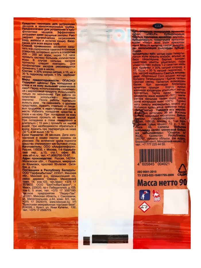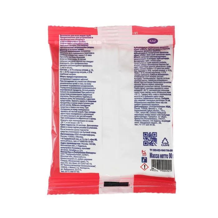 Способ применения: аккуратно засыпать все содержимое пакетика в сливное отверстие, через 1-2 часа промыть систему большим количеством воды. В случае сильных засоров прочистку следует повторить. Для профилактики засоров следует применять 1 раз в месяц. Осторожно, содержит щелочь. При попадании на слизистые оболочки глаз, на кожу вызывает раздражение. Перед использованием ознакомиться с маркировкой продукта. Использовать только по назначению! При работе со средством использовать защитные перчатки. После работы тщательно вымыть руки. Не смешивать с другими средствами. Хранить вдали от пищевых продуктов, в сухом недоступном для детей месте. Избегать попадания средства в глаза и на кожу. При попадании на кожу немедленно промыть ее чистой водой. При попадании в глаза немедленно и длительно 15 мин, промыть их чистой водой. При необходимости обратиться к врачу. Хранить при температуре не ниже –