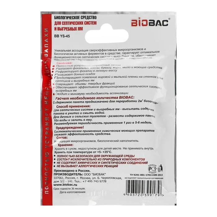 Описание: идеальный симбиоз сверхэффективных микроорганизмов и биологически активных ферментов в средстве гарантирует оптимальное функционирование септических систем и выгребных ям, сводит к минимуму необходимость ассенизации, расщепляет мыло, бумагу. Уникальная биологическая формула аэробных, анаэробных микроорганизмов, минеральных солей и биологически активных ферментов обеспечивает максимальную эффективность средства.