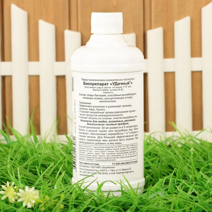 Микробиологический препарат пригодится для дачных туалетов, выгребных ям, биотуалетов. Действующими веществами являются споры и живые клетки бактерий. Средство эффективно разлагает органику, фекалии, жиры, бумагу, устраняет неприятные запахи разложения органических продуктов жизнедеятельности.