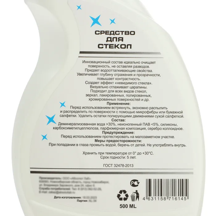 Улучшает видимость дороги при вождении, образует оптический эффект четкости и супер-прозрачности. Присутствуют гидрофобные и полирующие свойства. Качественно очищает поверхность. Подходит для стекол и зеркал, душевой кабины, очков, автомобильных фар.