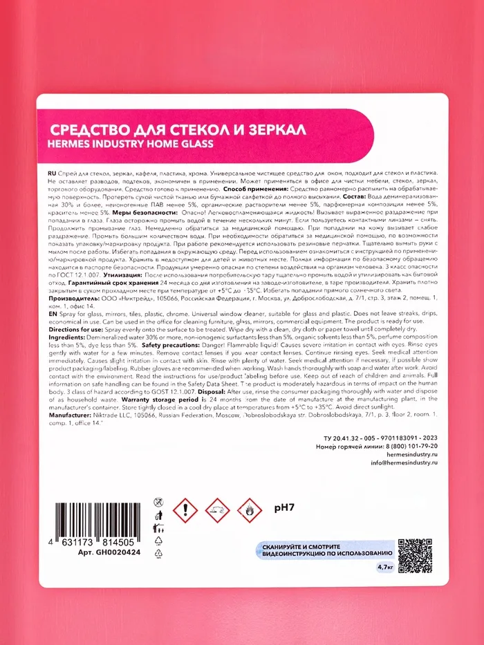 Hermes Industry GLASS HOME с ароматом барбариса — это идеальный выбор для тех, кто ценит не только чистоту, но и атмосферу уюта. Сделайте уборку не рутиной, а удовольствием — с ароматом, который вдохновляет, и качеством, которому доверяют профессионалы.