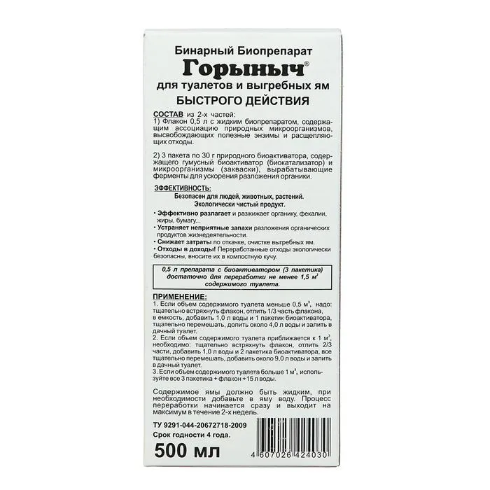 Микробиологический препарат пригодится для дачных туалетов, выгребных ям, биотуалетов. Действующими веществами являются споры и живые клетки бактерий. Средство эффективно разлагает органику, фекалии, жиры, бумагу, устраняет неприятные запахи разложения органических продуктов жизнедеятельности.