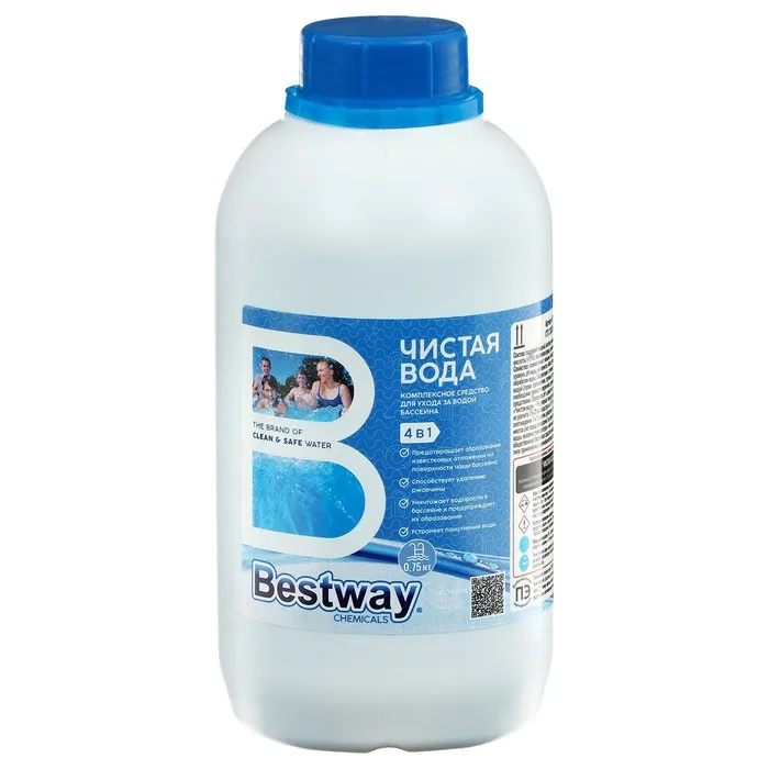 Комплексное средство 4 в 1 Bestway предназначено для уничтожения водорослей в бассейне и предупреждает их образование.