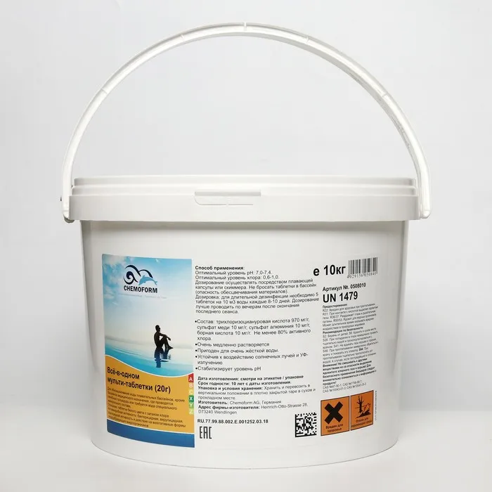 - При интенсивном использовании бассейна, высокой жёсткости воды, высоких температурах и обильных осадках рекомендуется увеличить частоту введения средства.