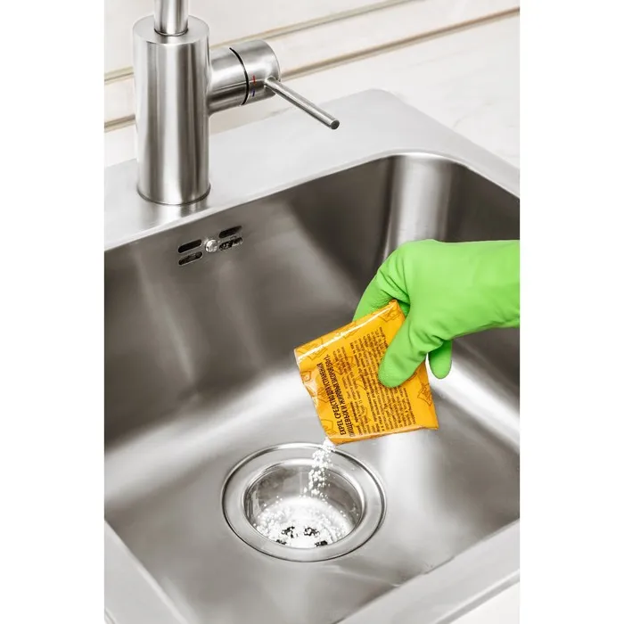 Способ применения: пакет встряхнуть, вскрыть и засыпать содержимое в сливное отверстие раковины затем добавить 200 мл теплой воды. Через 15 мин промыть трубу большим количеством воды. При необходимости операцию повторить. Для профилактики засоров рекомендуется применять средство не реже 1 раза в месяц.