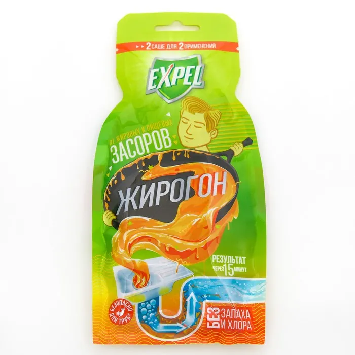 Средство для устранения пищевых и жировых засоров. Для ликвидации и предотвращения засоров в системах домашней канализации. Разрушает жировые и пищевые пробки за 15 мин. Важным отличием является отсутствие в его составе хлора, который имеет едкий и неприятный запах.