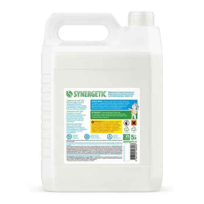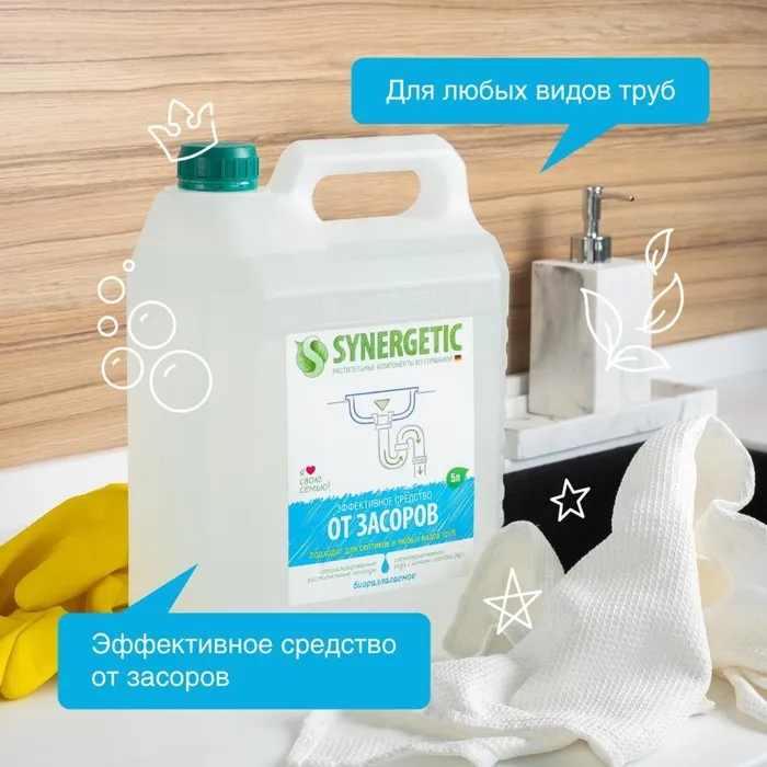 Концентрированное средство для устранения засоров SYNERGETIC - высокоэффективное средство, подходящее для любых видов засоров и канализационных труб.