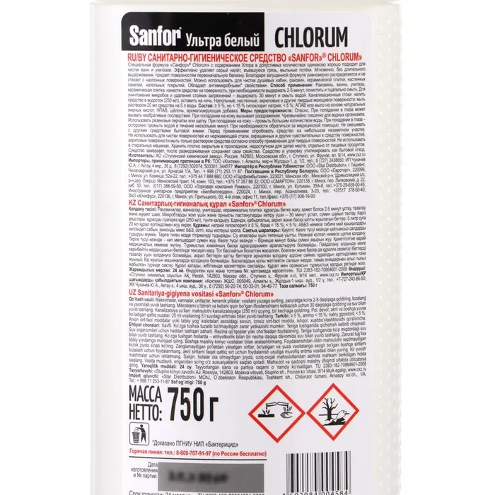Специальная формула с содержанием хлора в допустимых количествах одинаково хорошо подходит для чистки ванн и унитазов. Эффективно удаляет серый налет, въевшуюся грязь, мыльные потеки. Мгновенно, без длительных выдерживаний придает поверхностям первоначальную белизну. Благодаря загущенной формуле равномерно распределяется и не стекает с наклонных поверхностей. Можно использовать для чистки душевых кабин, раковин, керамической плитки, настенных панелей, напольных покрытий. Обладает антимикробными свойствами. Хлор – наиболее эффективное дезинфицирующее вещество.