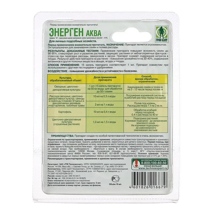 Средство для замачивания семян Энерген Аква флакон 10 мл — Характеристики