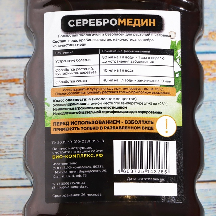 Средство для защиты растений "Серебромедин", БИО-комплекс, 250 мл — Характеристики