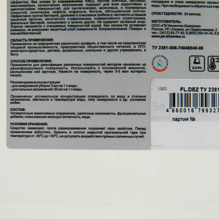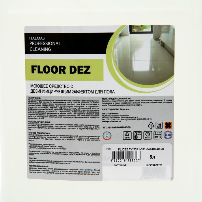 Средство моющее щелочное с дезинфицирующим эффектом для пола IPC Floor Dez 5 л — Характеристики