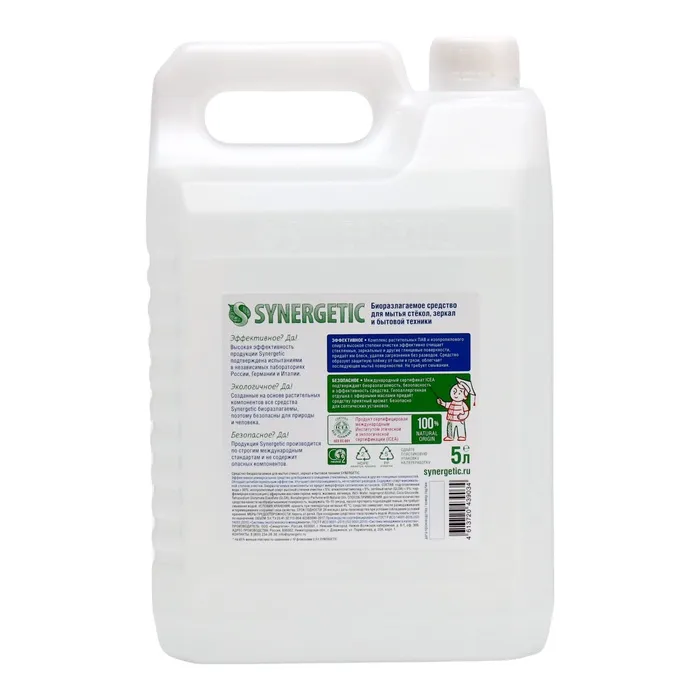 Биоразлагаемое средство для мытья стекол, зеркал и бытовой техники SYNERGETIC - эффективное и универсальное средство для бережного очищения стеклянных, зеркальных и других глянцевых поверхностей.