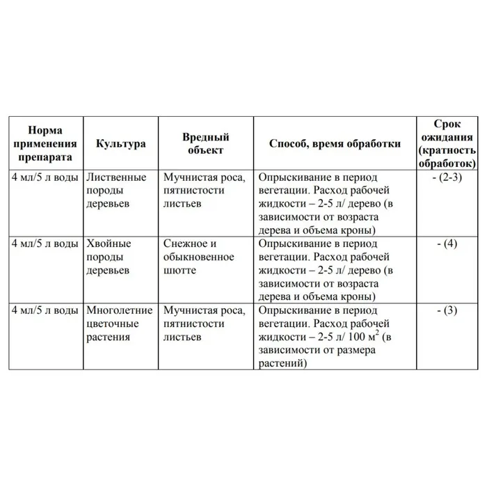 - быстро проникает в ткани растения и не смывается дождем уже через 2 часа после опрыскивания;