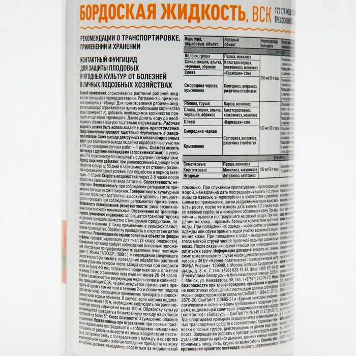 Средство от болезней растений Бордоская жидкость, 500 мл — Характеристики