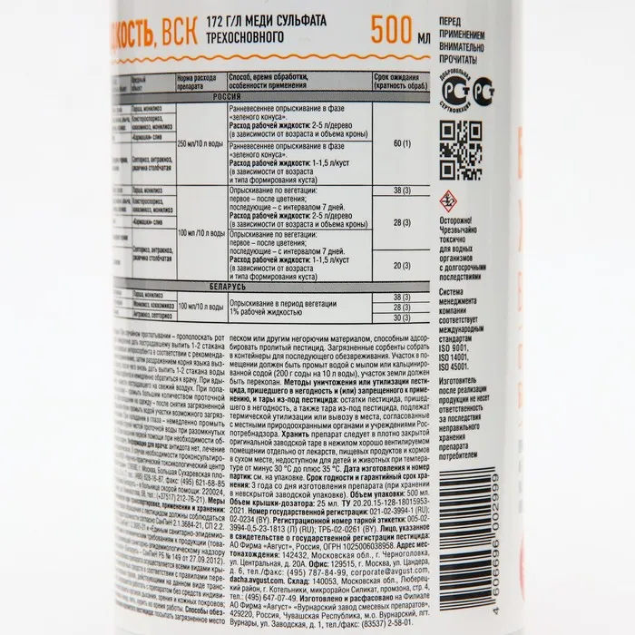 Действующее вещество: 172 г/л меди сульфата трёхосновного.