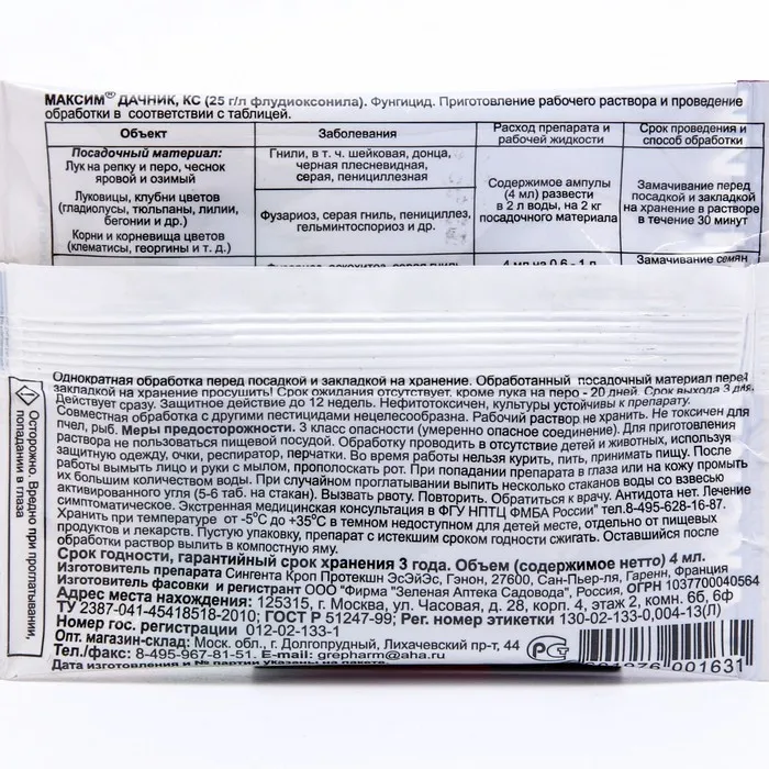 Средство от болезней растений Максим-Дачник, 4 мл — Характеристики