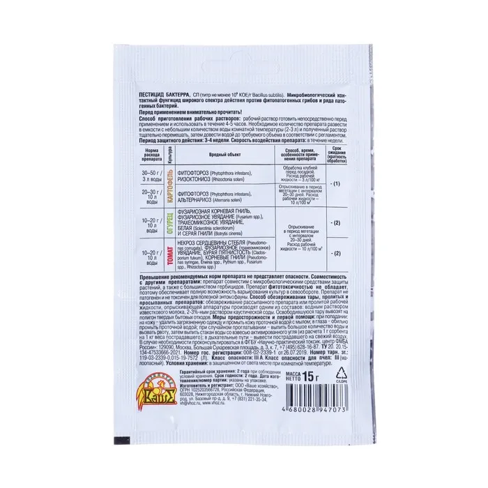 Пестицид Бактерра, СП (титр не менее 109 КОЕ/г Bacillus subtilis).