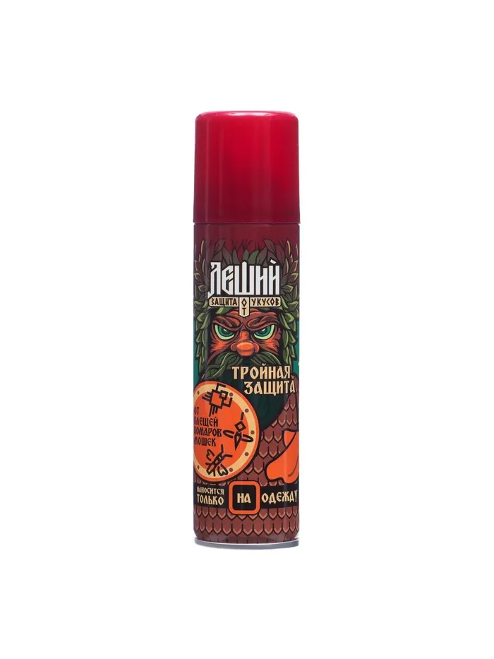Аэрозоль-репеллент от кровососущих насекомых и клещей ЛЕШИЙ. Комплексная защита от кровососущих насекомых и клещей предназначено для защиты взрослых людей от нападения кровососущих насекомых (комаров, мошек, мокрецов, москитов, слепней, блох), лесных и таёжных клещей при нанесении на открытые части тела, одежду, занавески, сетки и другие изделия из ткани.