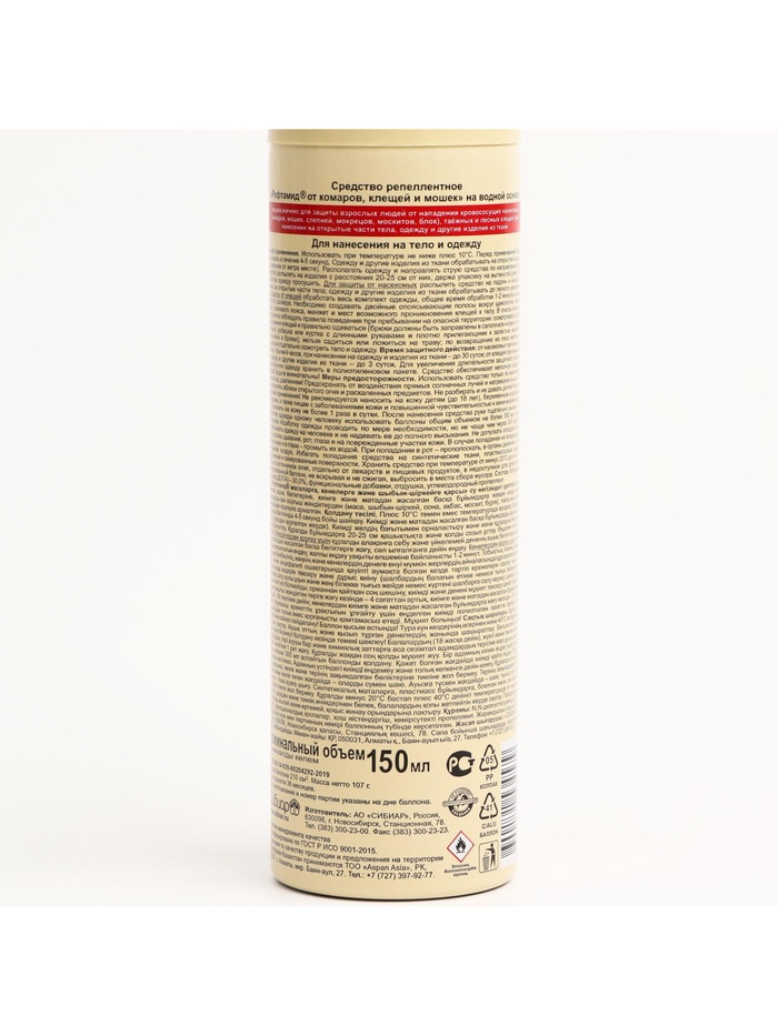 Средство от комаров, мошек и клещей « Рефтамид», аэрозоль репеллентный, на водной основе, 150 мл — Характеристики