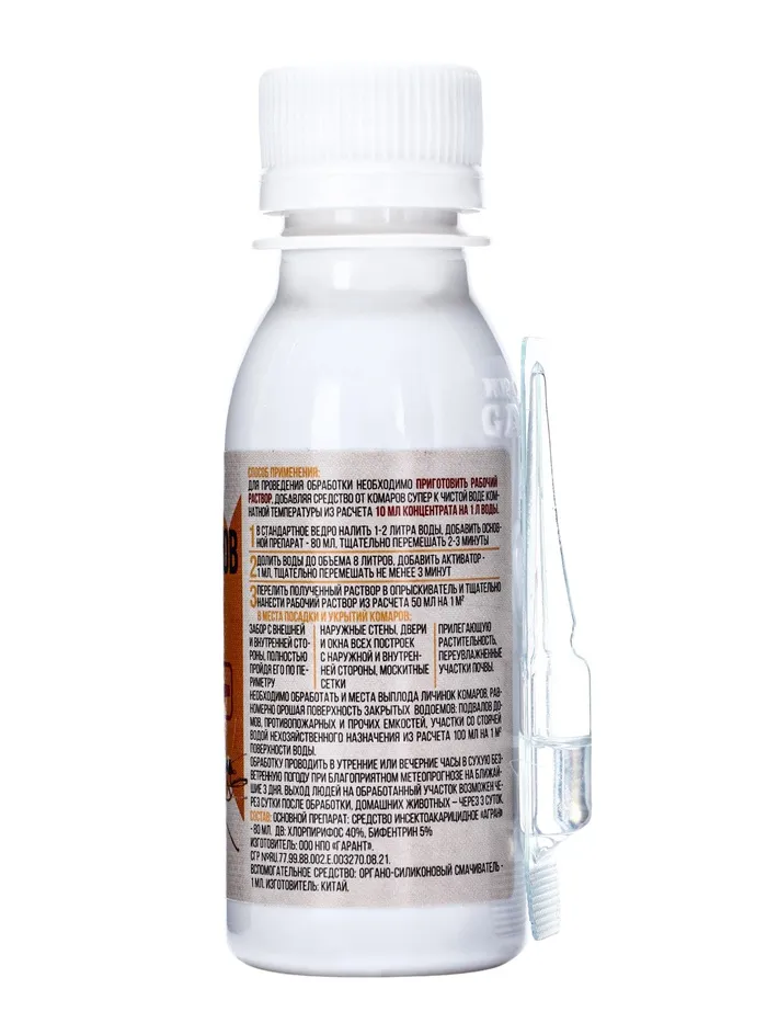 Защита без компромиссов! Жидкий инсектицид «Супер» с активатором — эффективное средство для быстрого уничтожения комаров. Работает сразу после распыления, создавая барьер против насекомых. Подходит для использования в помещении и на открытом воздухе.