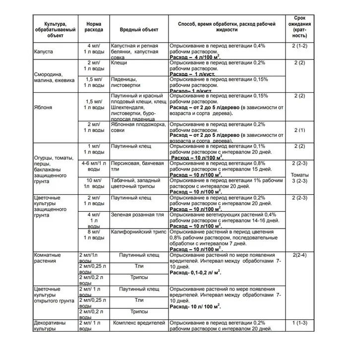 высокая скорость воздействия – насекомые прекращают питание уже через 6-8 часов, а их полная гибель наступает через 3-4 дня;